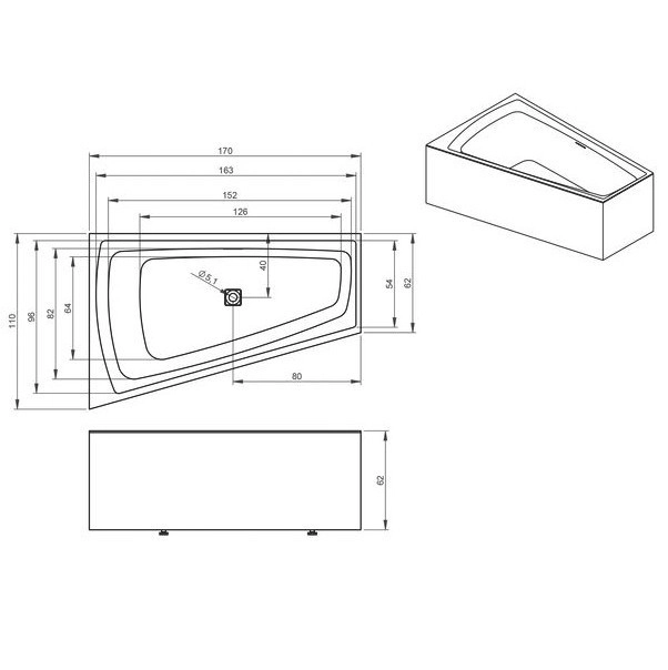 Отдельно стоящая асимметричная ванна RIHO Still Smart 170x110 R PLUG & PLAY, из глянцевого белого акрила, которая имеет очень удобную и просторную лежачую сторону. Ванна не занимает много места в ванной комнате благодаря скошенной форме ножной части.