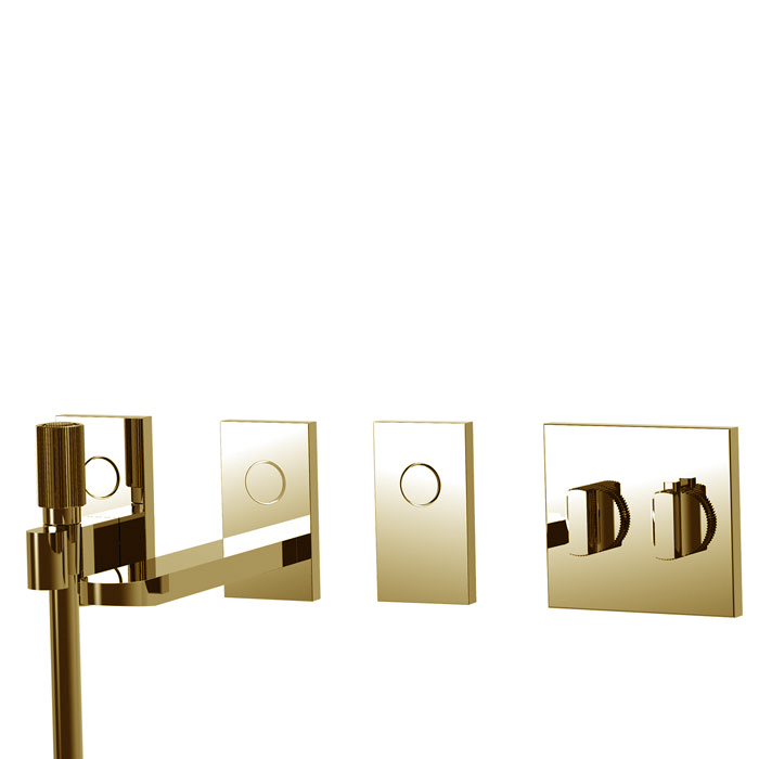 Смеситель Fima Carlo Frattini Switch для душа встраиваемый, термостатический, на 4 положен, ручной душ и черный шланг 1500мм, внешн часть, цвет золото