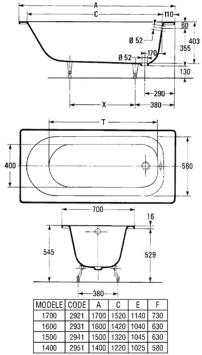 Чугунная ванна Jacob Delafon Soissons, 170 x 70 см, E2921-00 (GM)