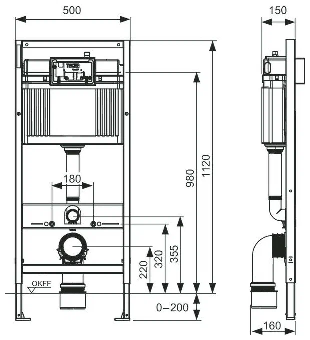 - Регулируемая высота: рама позволяет регулировать высоту установки унитаза для удобства монтажных работ и комфортного использования.