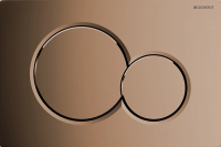 Эта модель отличается приятным цветом латуни. Кнопка устанавливается фронтально и предназначена для монтажа на унитазы с UP320 и UP720. Конструкция включает две клавиши разного размера, что позволяет выбрать режим слива: полный или частичный. Управление смывом осуществляется механически, простым нажатием на кнопку.