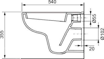 - Размер унитаза: 35.5 x 54 x 35.5 см