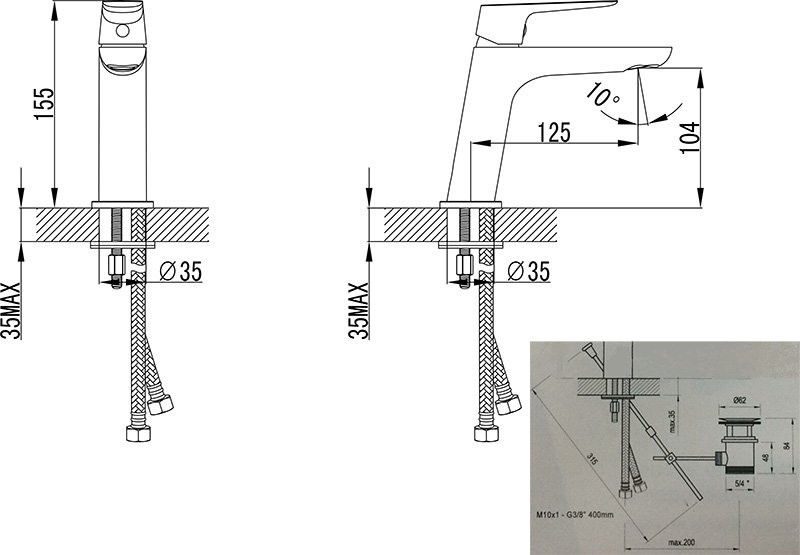 Смеситель для раковины Ravak Classic CL 011.00 X070081 с донным клапаном.