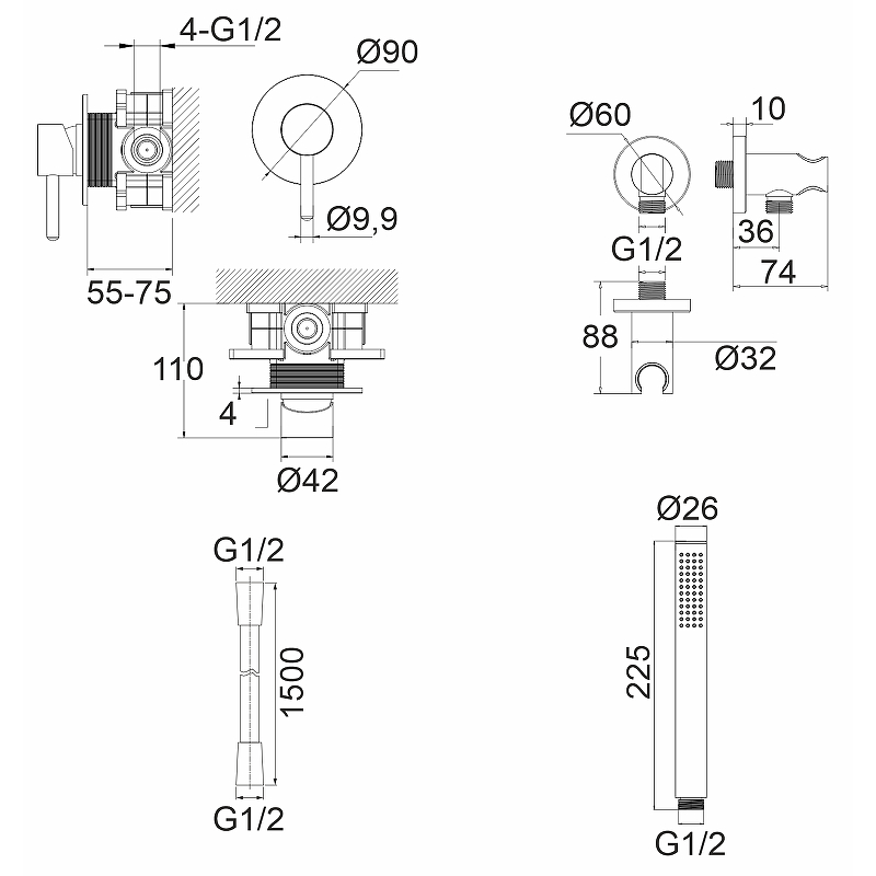 - Размер ручного душа (ШхВхД): 26х225х26.