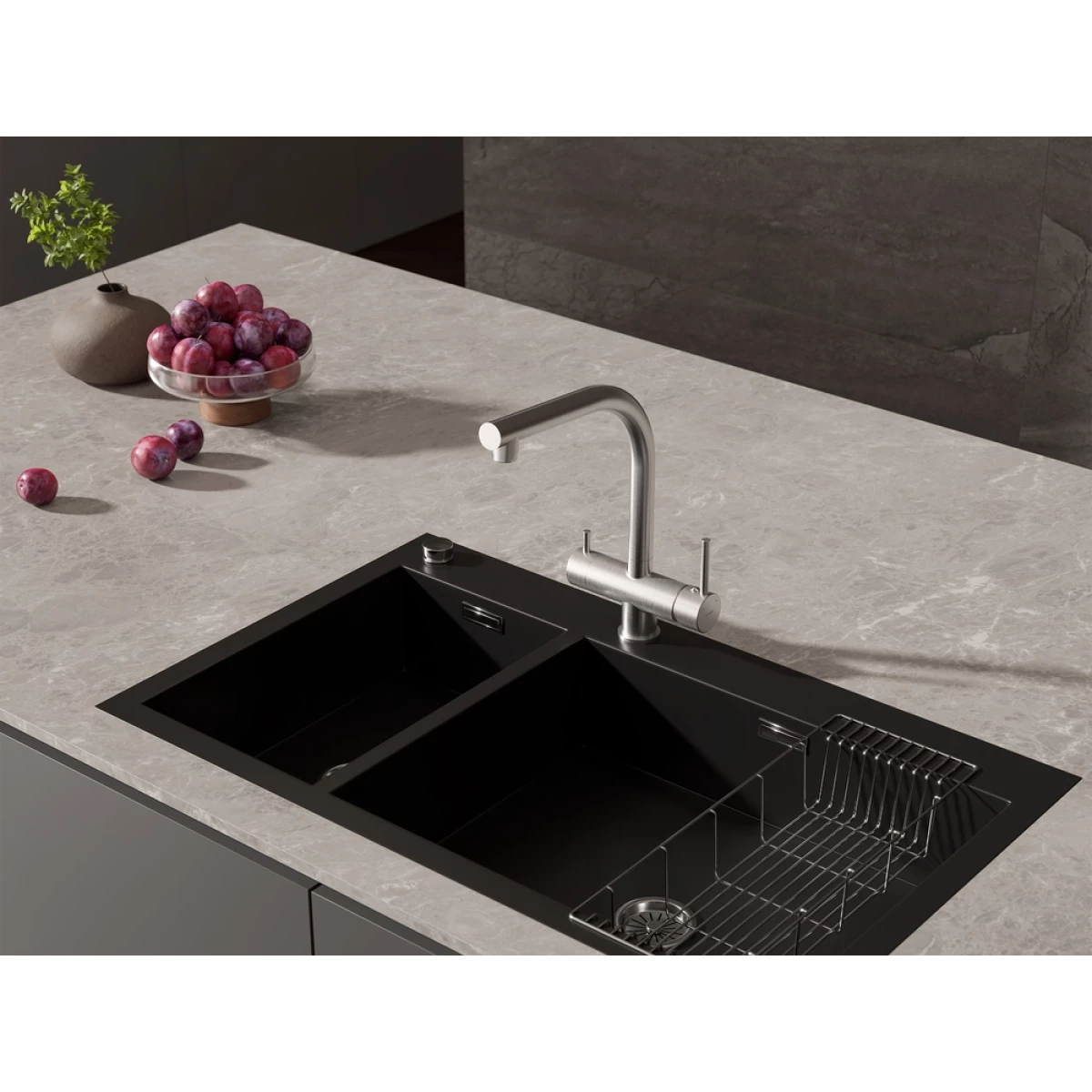 Смеситель для кухни Cersanit Zen A68249 с подключением к фильтру, гибким изливом, хром/черный