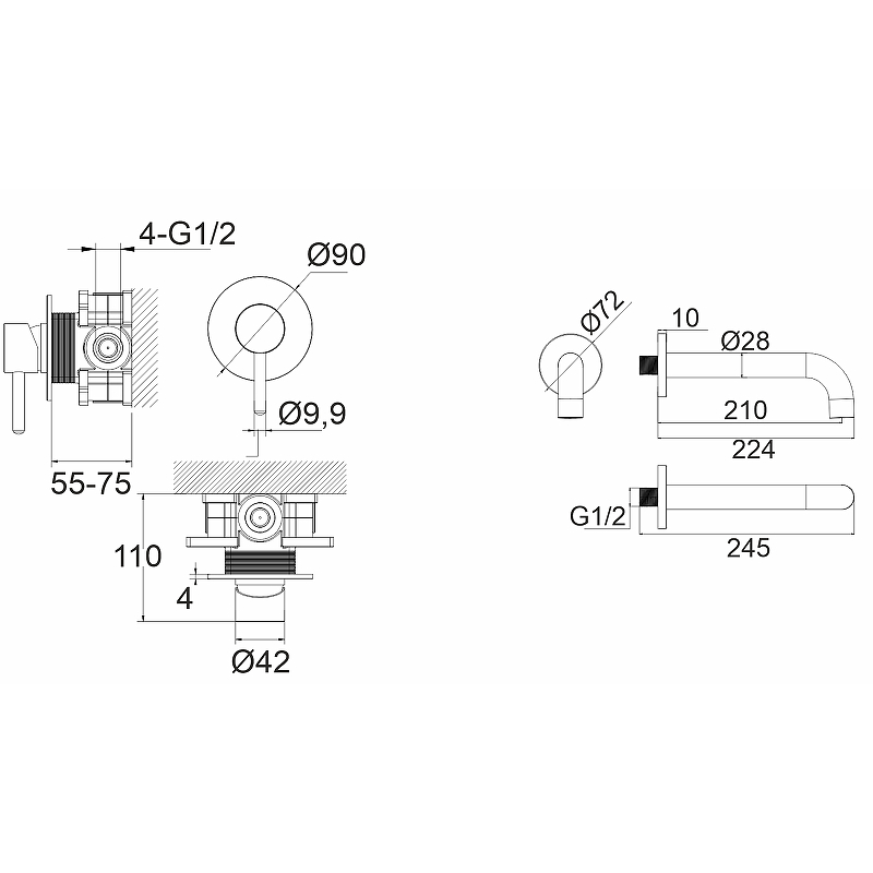 - Смеситель (внешняя и внутренняя часть) Y1245CR.