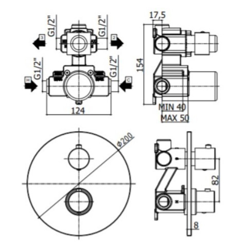 Смеситель Paffoni Level LEQ519CR/M для ванны и душа, термостат, встраиваемый, с внутренней частью, 3 потребителя, хром глянцевый