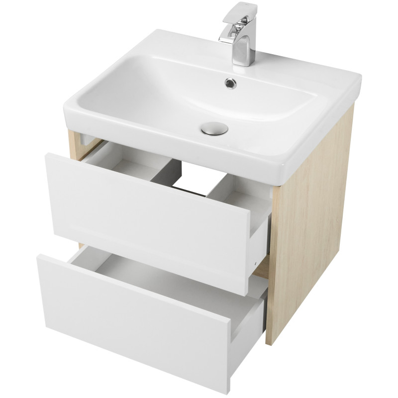 Тумба с раковиной белый глянец/дуб крафт 60 см Акватон Флай 1A2373K0FAX10