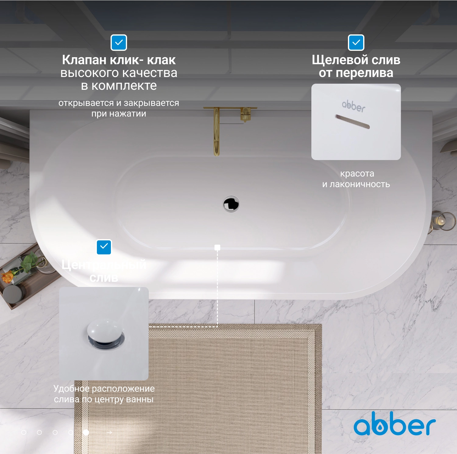 Пристенная акриловая ванна Abber AB9216-1.7DB 170х80. Изготовлена из высококачественного акрила. Низкая теплопроводность повышает комфорт принятия ванны. Гладкая, не скользкая и теплая на ощупь поверхность. Эффективное звукопоглощение.