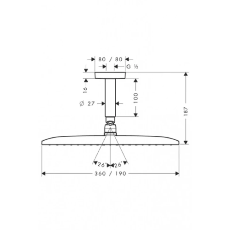 комнате. Хромированная стационарная лейка имеет размеры 36х19 см.